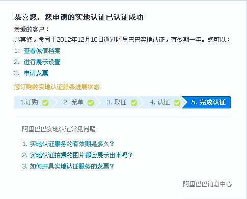 世林膠業(yè)在阿里巴巴誠信通會員歷經(jīng)九年了,謝謝阿里巴巴平臺給世林膠業(yè)的支持.2012年11月底世林膠業(yè)進(jìn)行了實(shí)地認(rèn)證申請,阿里巴巴的認(rèn)證效率非常之高,詳情請看下圖:
