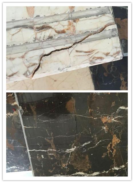 近丹東盧總接到一個酒店地板維護(hù)保養(yǎng)的工作,本以為是一件簡單的清潔打磨的工作,結(jié)果到現(xiàn)場一看,傻眼了!大理石的地面、臺階跟柱面,很多因?yàn)楸pB(yǎng)不好,大理石地面裂縫斷開,大理石臺階也斷裂了,怎么辦?不弄好一分沒賺還要賠,趕緊上網(wǎng)搜大理石裂縫修補(bǔ)膠,找到了株洲世林膠業(yè)的SL3214透明石材膠。一看資料這款膠主要用于臺面板的復(fù)邊粘接,也可用于石材的粘接和修補(bǔ),對貼花、拼花等具有很好的效果。和混凝土、金屬、木材、陶瓷及玻璃等均可粘接。1.固化速度快;2.和石材的附著力好;3.透明、光澤度較好、硬度高、適合淺色石、耐黃變室內(nèi)可達(dá)1年以上;4.粘度適中,不會到處流淌;5.操作方便; 6.耐磨、耐老化;7.有良好的耐候性、耐稀酸、耐稀堿、耐水;8.無毒,環(huán)保。