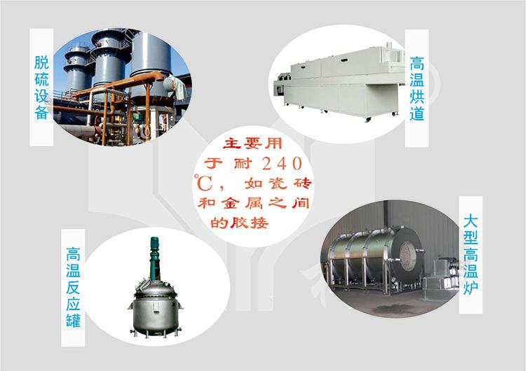 SL3350高溫環(huán)氧膠水。主要用于金屬與金屬、陶瓷與金屬、陶瓷與陶瓷等耐高溫部件的膠接,它的工作溫度為-50~+240℃,短時(shí)可達(dá)+300℃,如用于電廠的脫硫設(shè)備、高溫烘道、大型高溫爐、高溫反應(yīng)罐等的瓷磚和金屬之間的貼合等等。